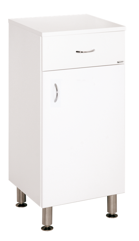 Lakované boky i čelní plochy; dodáváno smontované; včetně 4x výškově stavitelných nožiček a úchytek; otevírání dvířek levé nebo pravé; skříňku vhodně doplňuje závěsná skříňka PROH35