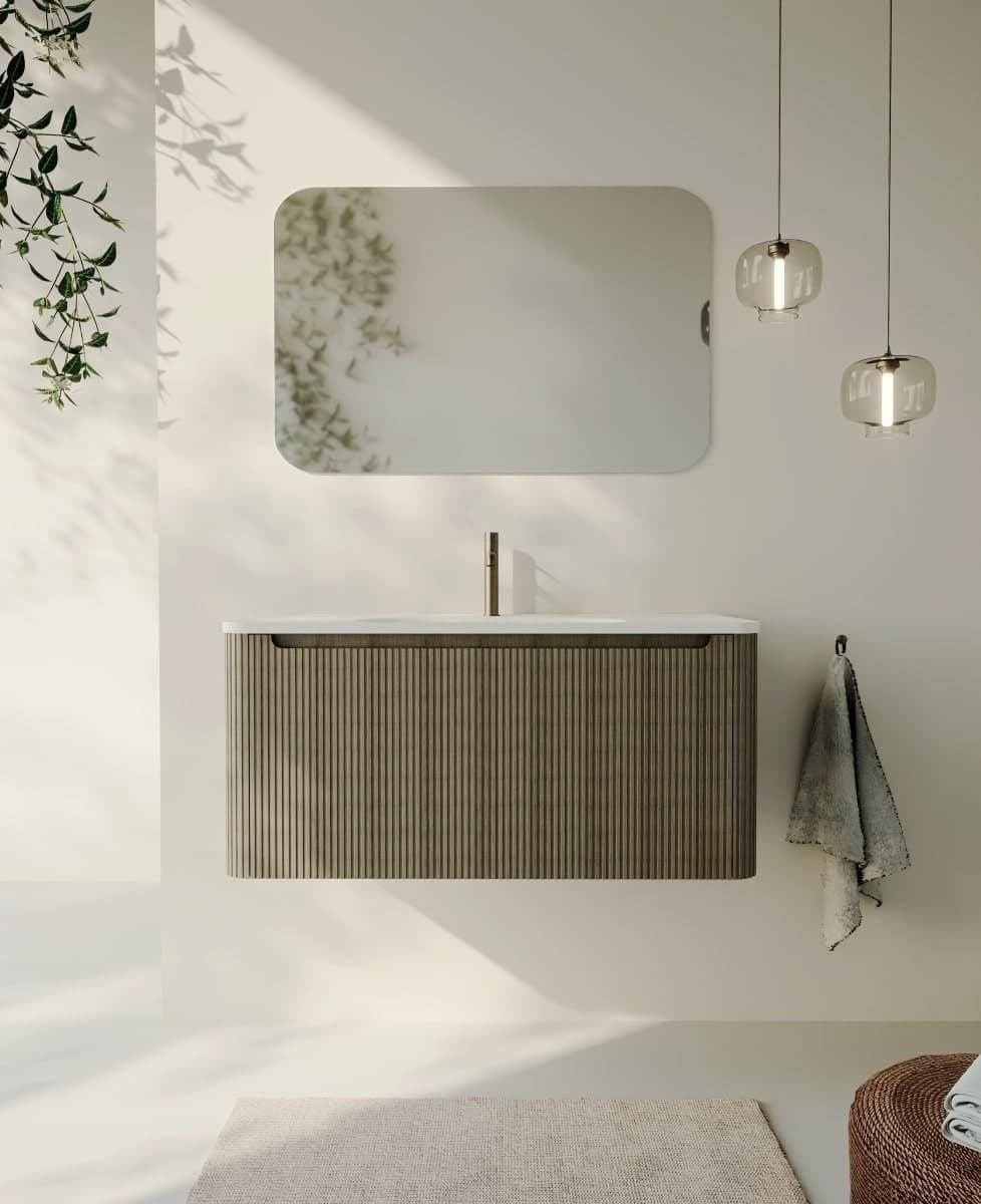 Závěsná; povrch v provedení fólie; umyvadlo z litého mramoru; s plnovýsuvem a dotahem