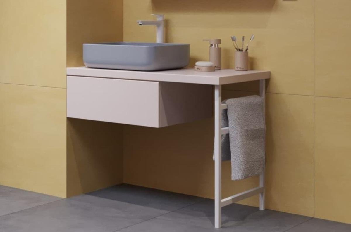 - Koupelnový set pro umyvadlo na desku skládá z desky, zásuvky a podpůrné nohy - komponenty balené zvlášť