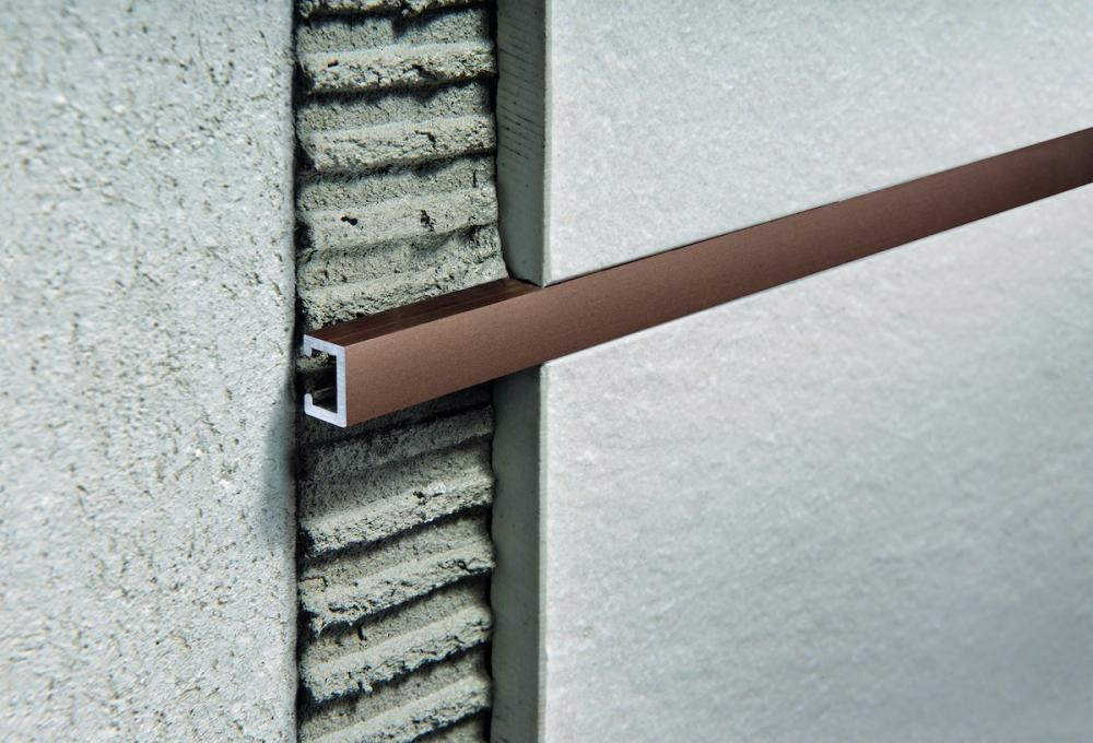 Hnědá dekorační hliníková lišta v provedení elox copper (měď), šířka hrany 10 mm, délka 270 cm.