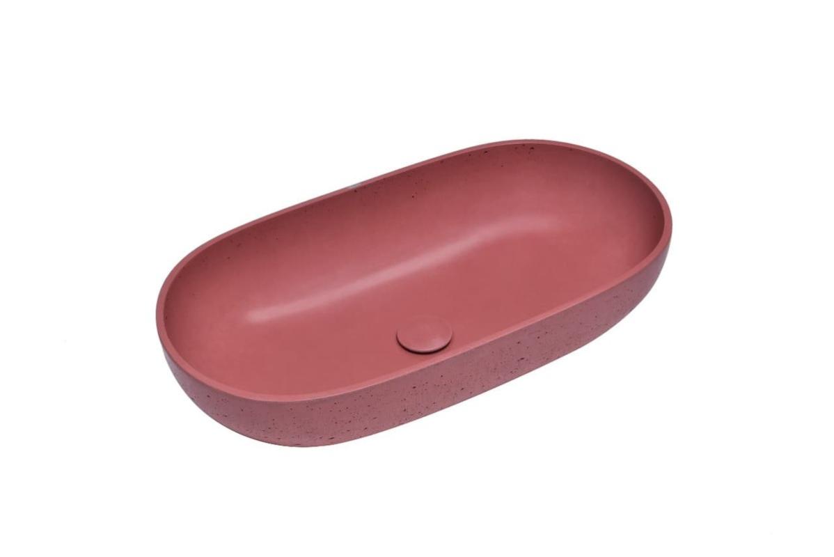 - Designové betonové umyvadlo s tenkými stěnami v antracitové barvě. Beton má jakožto přírodní materiál svůj charakteristický ráz. Má rozdílnou barvu a každý vyrobený kus je originální, mírně odlišný než ten předešlý. Užíváním se mění, nezůstává stejný, může obsahovat malé póry a mikrotrhliny, a právě tyto vlastnosti jsou stěžejními prvky estetična betonu a dávají mu jeho osobitý charakter.