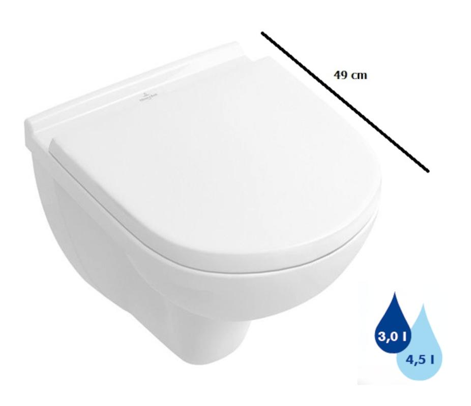 Hluboké splachování, úsporné splachování AQUAREDUCT se spotřebou vody 3/4,5 l vody, provedení Compact s délkou mísy 49 cm, vhodné pro malé koupelny, bez sedátka