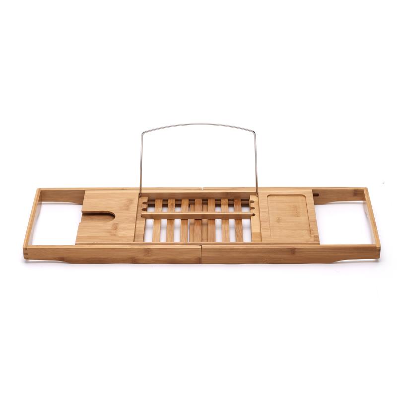 Police má nastavitelnou délku 70-105 cm, takže ji můžete přizpůsobit přesně na vaši vanu. Je vybavena praktickým kovovým stojanem pro zapření knihy, otvorem pro zasunutí sklenky vína a dalším odkládacím prostorem na mobil, lak na nehty či misku s oříšky. Vanová polička je vyrobena ze 100% přírodního bambusu, který je odolný proti vlhkosti.