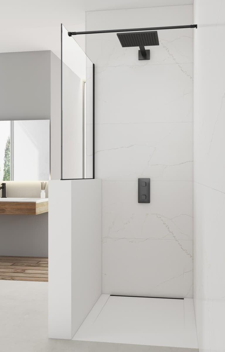 Moderní sprchová zástěna SAT Walk-In s rozměry 100×100 cm je speciálně navržena pro instalaci na sníženou příčku. Ideální řešení pro elegantní a bezbariérový vstup do sprchy, které skvěle zapadne do moderní koupelny. Čiré bezpečnostní sklo o tloušťce 8 mm s povrchovou úpravou pro snadnou údržbu zaručuje dlouhou životnost. Šířka vstupu a tím pádem i celé sprchy lze přizpůsobit individuálním požadavkům díky nastavitelné šířce upevňovacího ramene (maximálně 120 cm). Velkou výhodou je možnost designového sladění – příčku lze obložit stejným obkladem jako zbytek koupelny, takže dokonale zapadne do celkového designu a podtrhne jednotný vzhled vašeho interiéru.