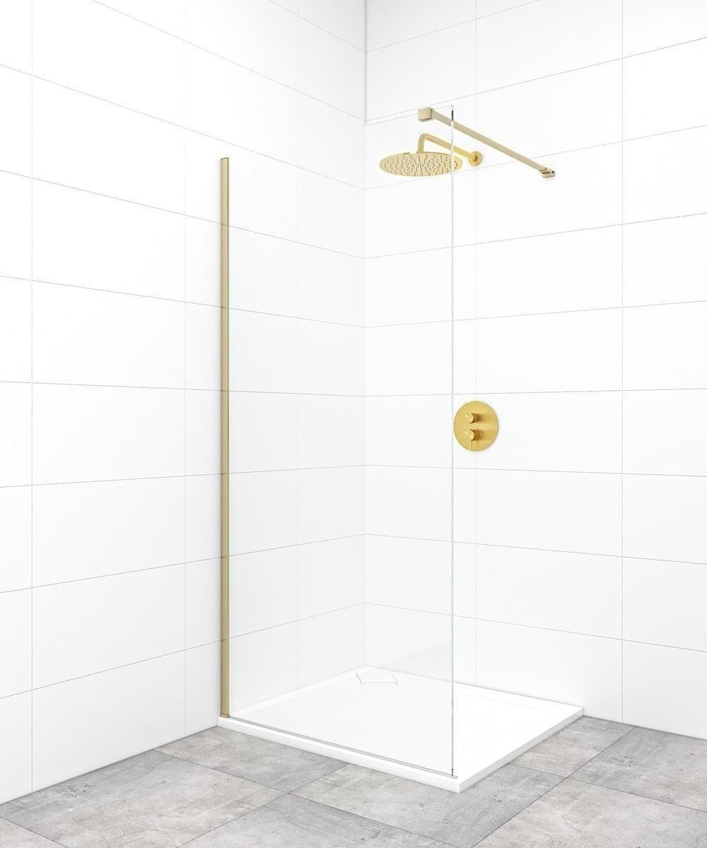 Sprchová zástěna z transparentního bezpečnostního skla zabraňuje rozstřikování vody po celé koupelně, ale zároveň přináší volnost při vstupu do sprchy bez nutnosti otevírání dveří a překračování prahu. Průhledné sklo dává příležitost vyniknout sprchové baterii či obkladům ve sprše. Šířka vstupu a tím pádem i celé sprchy lze přizpůsobit individuálním požadavkům díky nastavitelné šířce zavětrování (maximálně 120 cm).