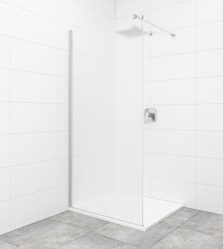 Sprchové kouty typu walk-in nabízí trendy a jednoduché řešení nejen do malých koupelen, kde získáte pocit otevřeného a vzdušnějšího prostoru. Sprchová zástěna z transparentního bezpečnostního skla zabraňuje rozstřikování vody po celé koupelně, ale zároveň přináší volnost při vstupu do sprchy bez nutnosti otevírání dveří a překračování prahu. Šířka vstupu a tím pádem i celé sprchy lze přizpůsobit individuálním požadavkům díky nastavitelné šířce zavětrování (maximálně 120 cm).