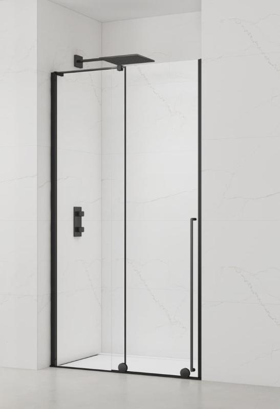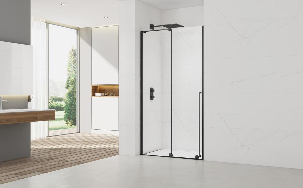Včetně nikového profilu v černé barvě; výplň čiré sklo bez dekoru; povrchová úprava Easy Clean; posuvný systém otevírání; levá i pravá orientace