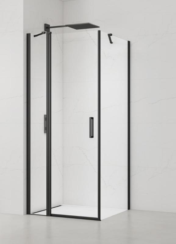 Bez vaničky, profily černá mat; výplň čiré sklo bez dekoru; povrchová úprava Easy Clean; pivotový systém otevírání; levá i pravá orientace
