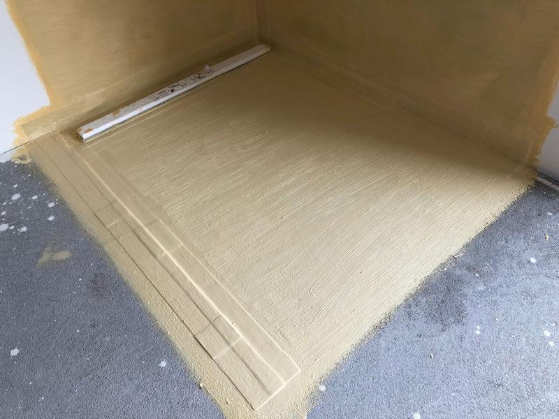 Po zaschnutí provádíme v dalším technologickém kroku první nátěr v celé ploše. Do této první souvislé vrstvy se v exponovaných místech (rohy, prostupy, styk vodorovných a svislých ploch) vkládají prvky TĚSNICÍHO SYSTÉMU HASOFT (TĚSNICÍ PÁSY, ROHY, PRŮCHODY) podle technologického postupu příslušného k těmto prvkům. Dbejte na dokonalé proschnutí první vrstvy! Následně (cca po 24 hod.) při normálních klimatických podmínkách je možné provést druhý nátěr – nejlépe křížem na nátěr první. Konečná úprava pod obklady a dlažby by měla dosahovat tloušťky cca 1 mm. Po dokonalém vyschnutí (cca za 24 hod.) je možné pokládat dlažbu nebo obklad s použitím flexibilního lepidla min. třídy C2 (dle EN 12004).