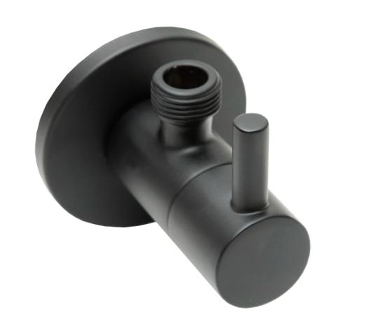 Designový roháček s páčkou, kterou se otevírá/uzavírá přívod vody (otočením o 90°). Moderní černá matná barva