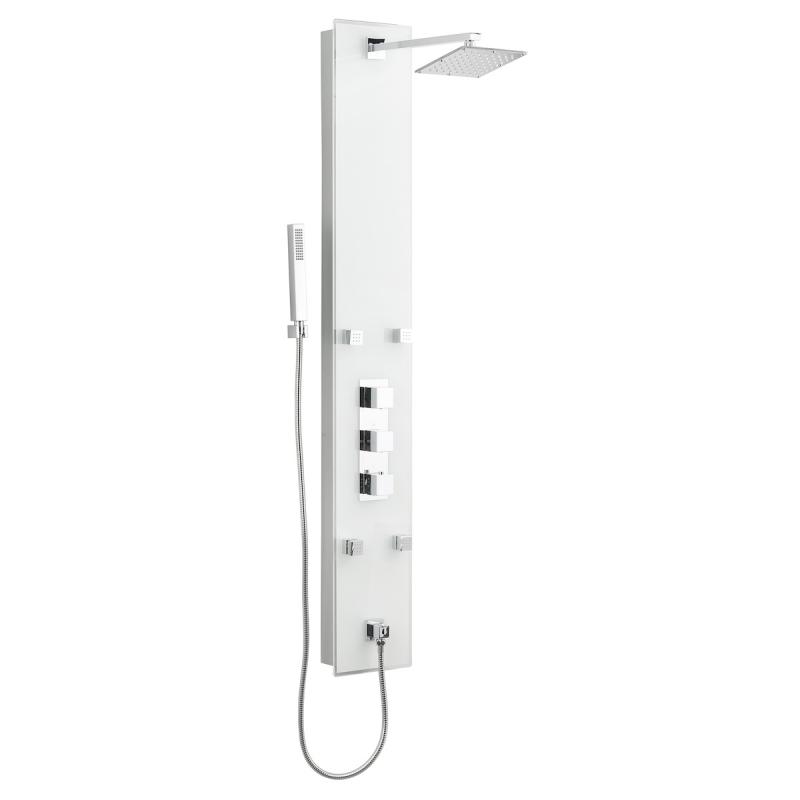 Sprchový panel Anima Glass Shower na stěnu s termostatickou baterií bílá GLASHOWER
