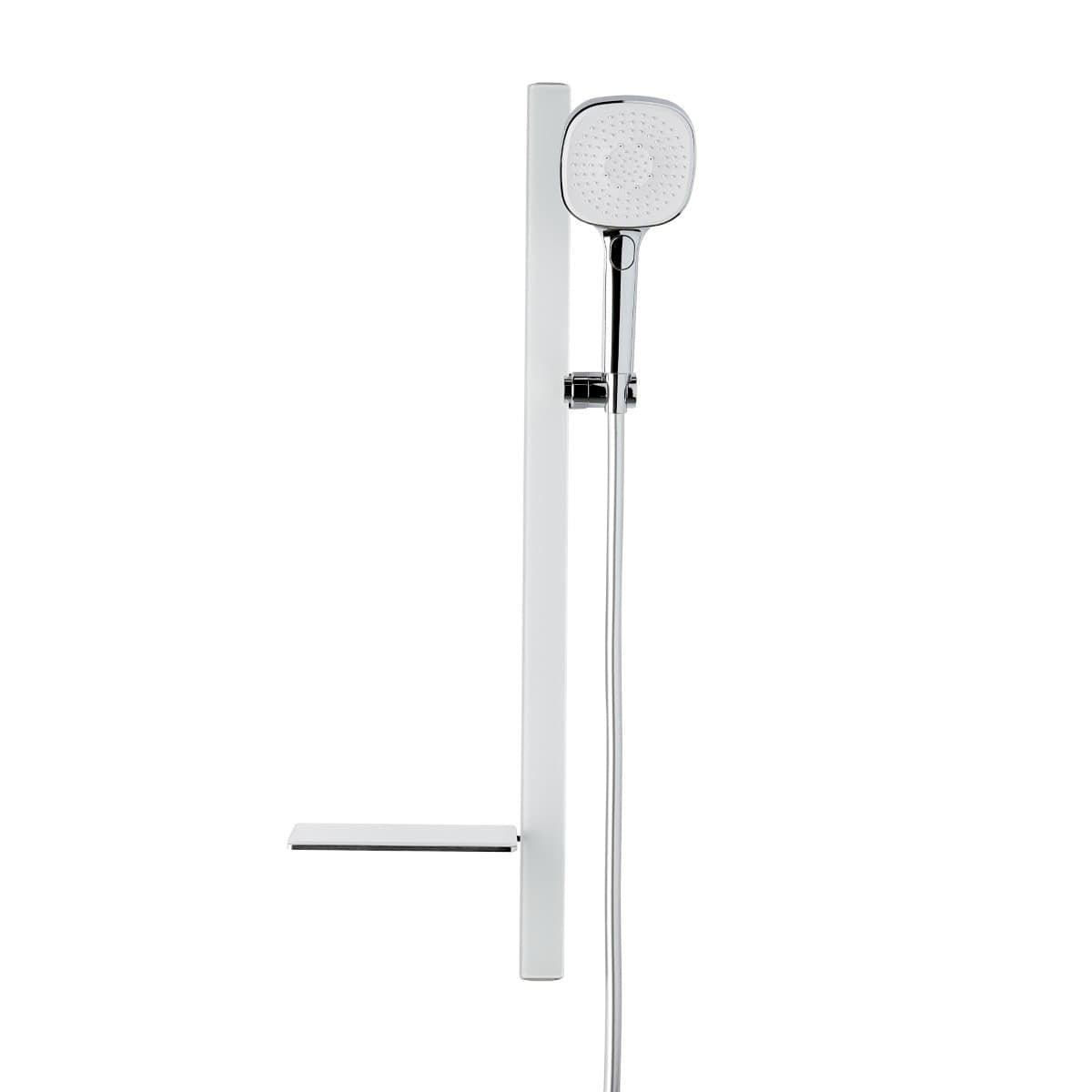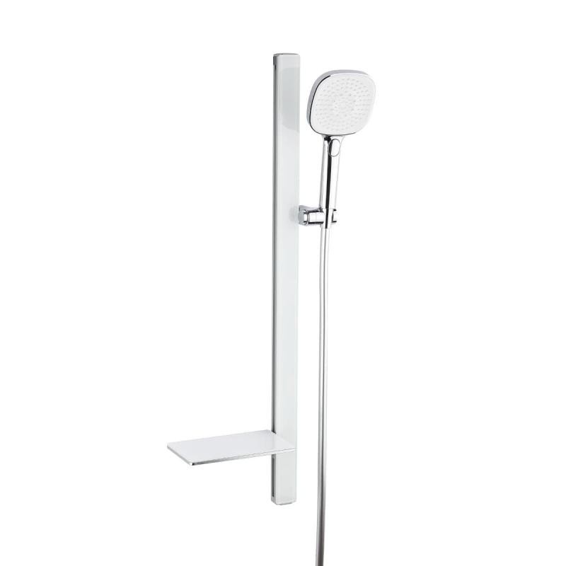 Sprchový set SAT s praktickou poličkou, sprchovou hadicí a ruční sprchou se 3 sprchovými proudy.