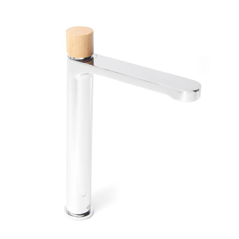 Vysoká umyvadlová baterie SAT Fusion bez výpusti páka světlé dřevo SATBSFU285DS