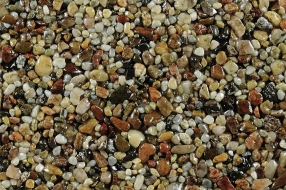 Je směsí pojiva TopWall a vybraných říčních, mramorových či perleťových kamínků – nejlépe frakce 2-5 nebo 2-4 mm a po vytvrzení zpevněná a uzavřená epoxidovým gelem TopGel.