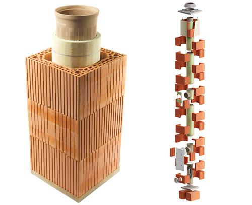 - Třívrstvý systém (izostatická vložka, tepelná izolace, broušená cihelná komínová tvarovka)